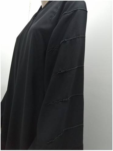 Simple yet moderately fancy bead work on the sleeves and side of Abaya.