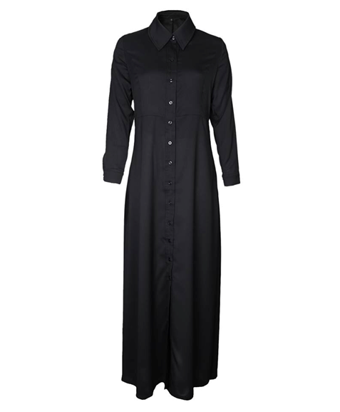 Shine with Goodness with our Peter Pan Collar Abaya with cuffed sleeves and button opening up to the knees.